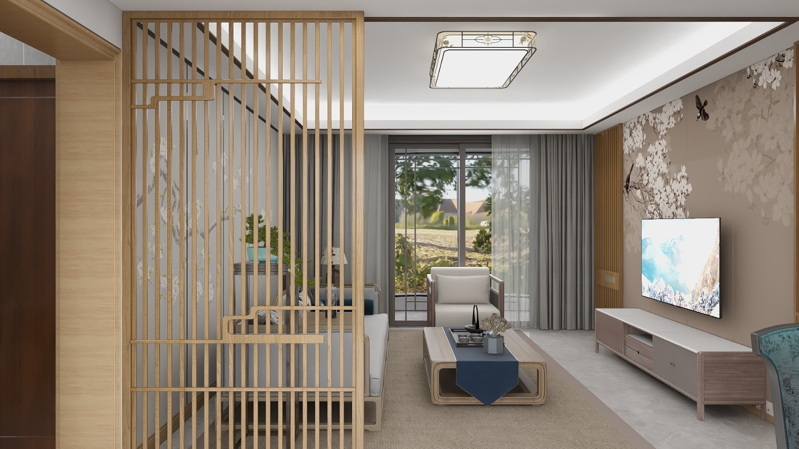 沙發(fā)背景墻融入了中式的意境與電視背景墻向虎銀,襯托出中式的韻味。